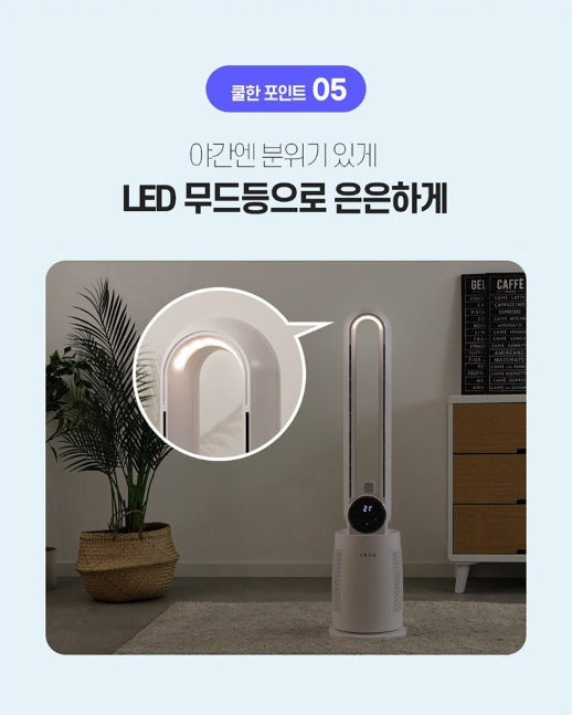 은은한 LED 무드등이 있어서 야간에는 분위기 있게 무드등으로도 활용이 가능합니다.